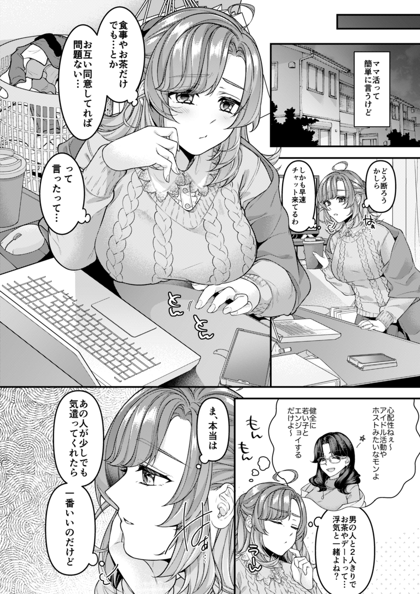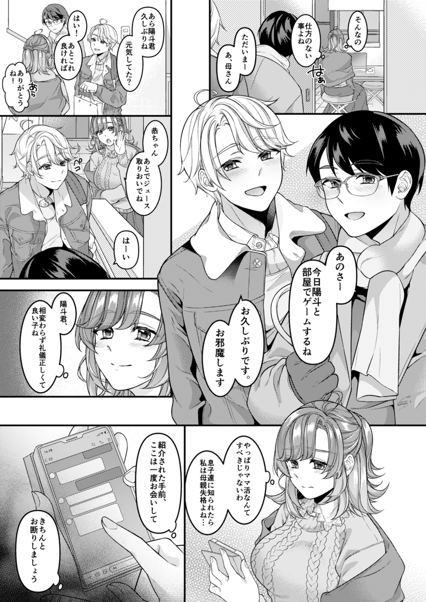 作品名『お母さん、ママ活にハマってます』作者名『新鮮搾りたて生牛乳(幸せな朝食。)』ページ数:24ページ【FANZA(DMM)】