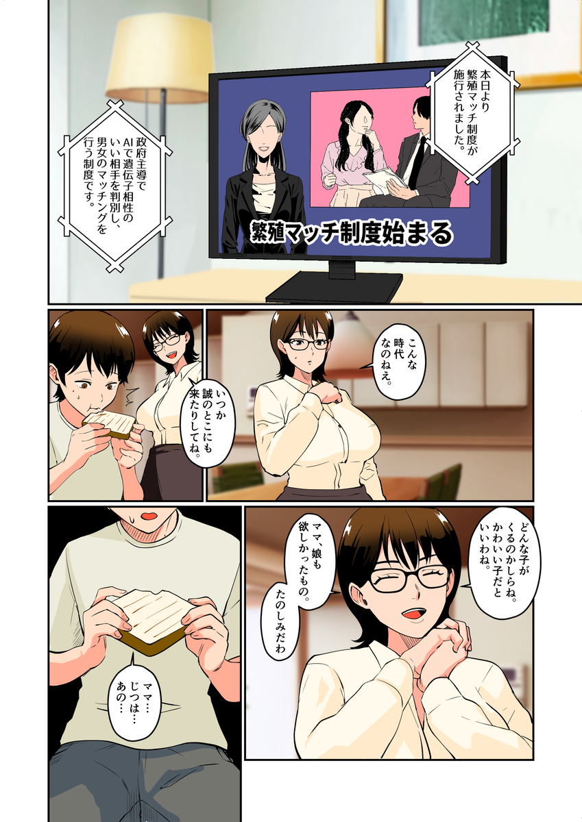 作品名『僕の少子化対策マッチングの相手はママ!?』作者名『マリアプラネット(片野ちか)』ページ数:41ページ【FANZA(DMM)】
