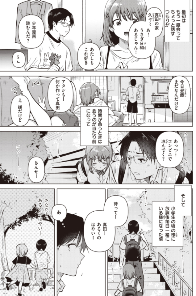 【エロ漫画】子供の頃よく遊んでいた幼馴染JKと数年ぶりに再会したんだけど、その後も何度か二人だけで会ってるうちにどんどん仲良くなってイチャイチャ初エッチしちゃった♡