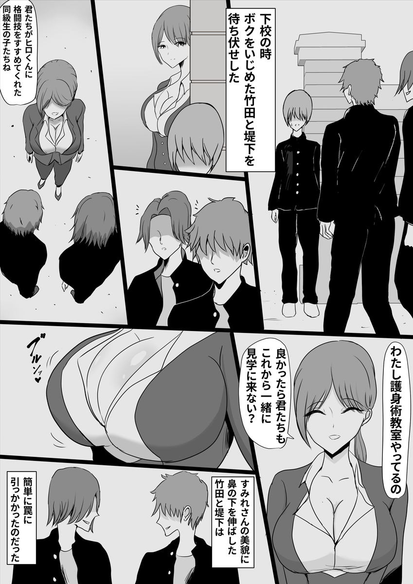 作品名『いつもボクを守ってくれた護身術講師のおばさんがいじめっ子に返り討ちにされてハメ倒されちゃう話』作者名『ひなえろん』