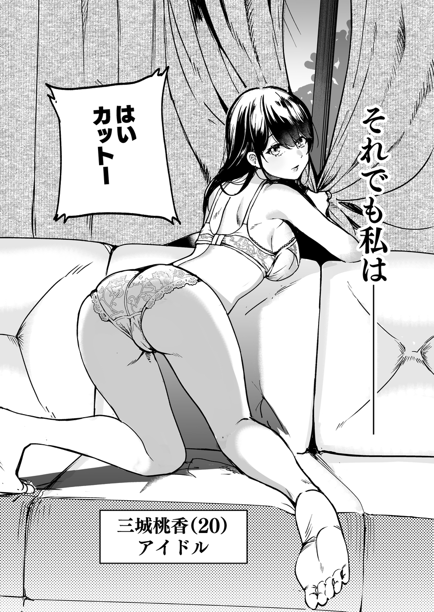 作品名『崖っぷちアイドル、初めてのグラビア撮影で絶頂!?〜水着の中までマッサージされるなんて聞いてません!〜』作者名『えちち工房(ababari)』