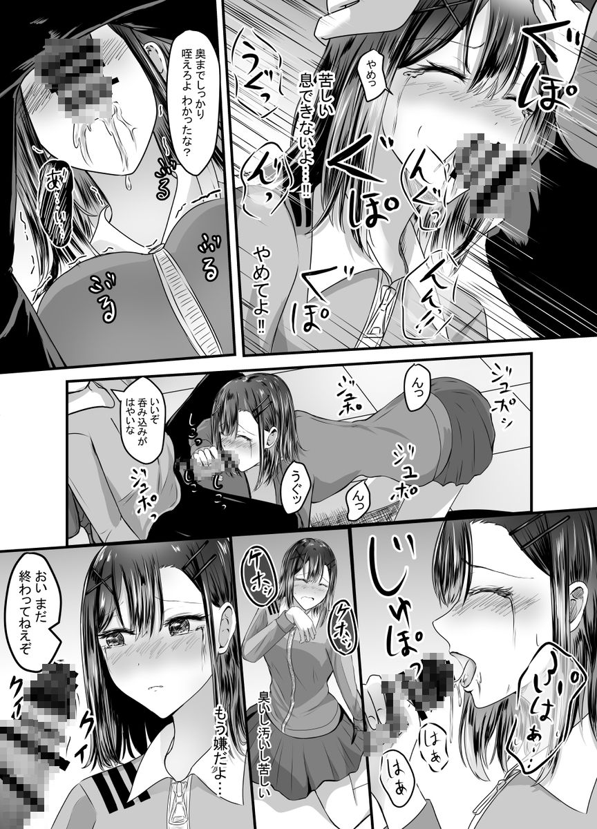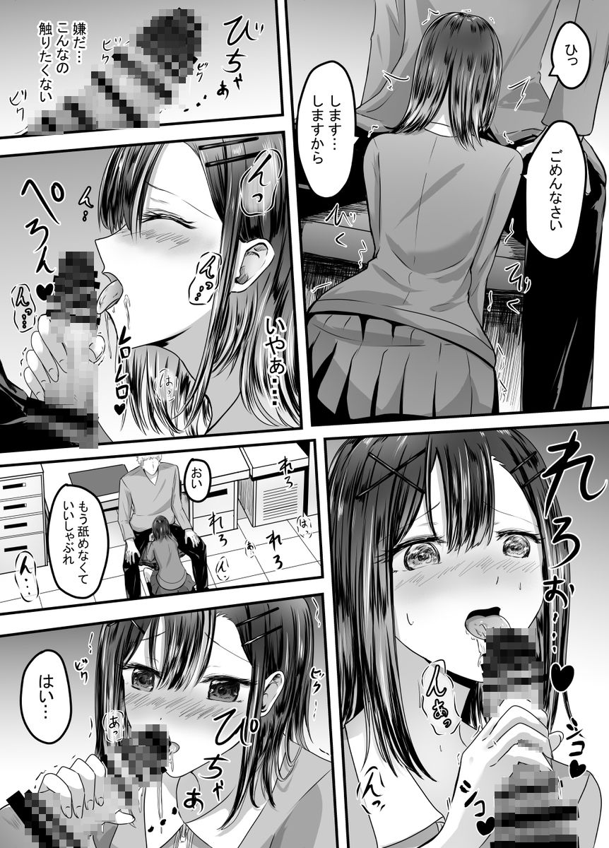 【エロ漫画】コンビニでバイトをしている処女の女の子がDQN客3人組に言いがかりを付けられて脅されておっぱい揉まれたりチンポしゃぶらされてレイプされちゃう・・・